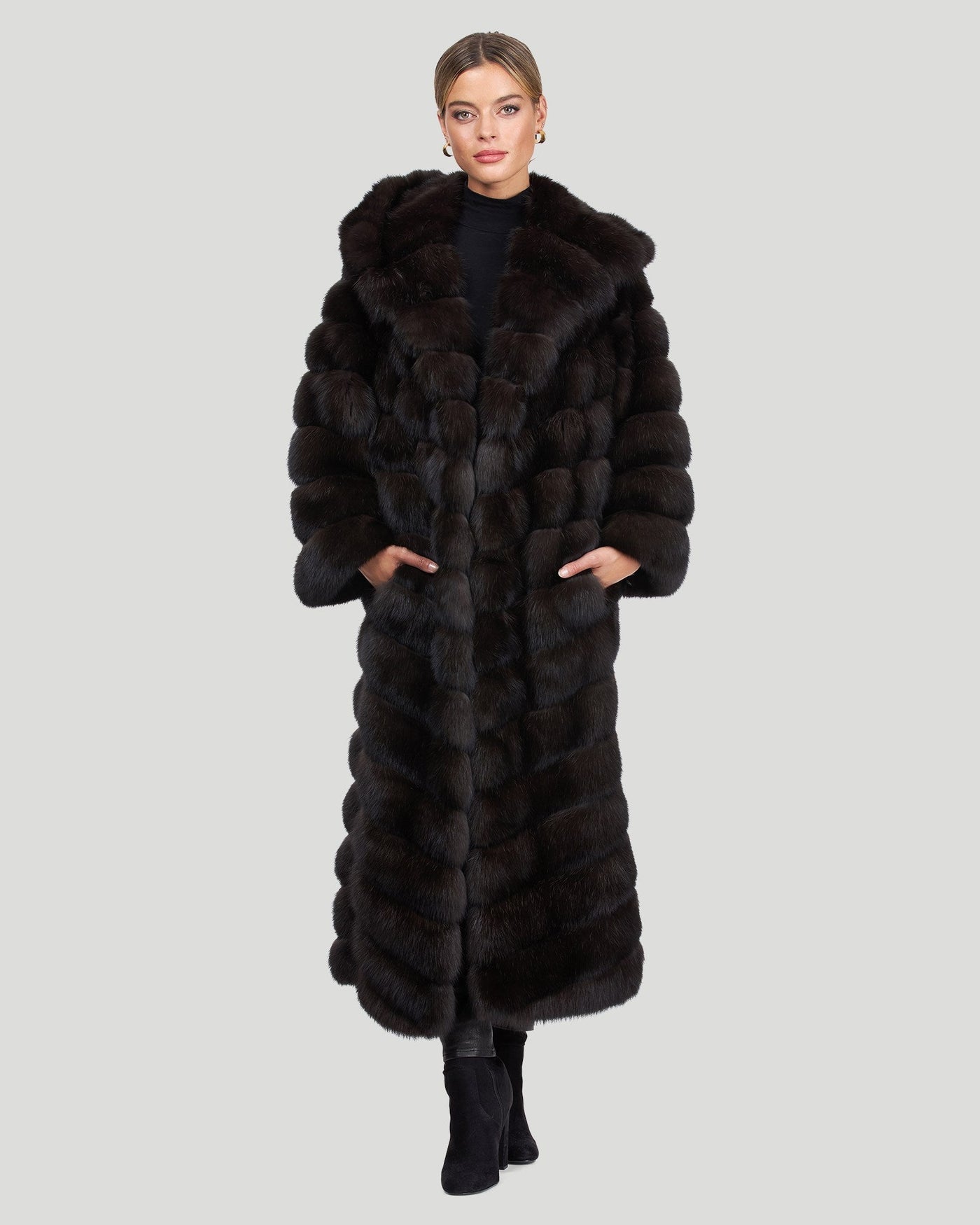 Horizontal Russian Sable Coat with Hood Gorski First Copy
