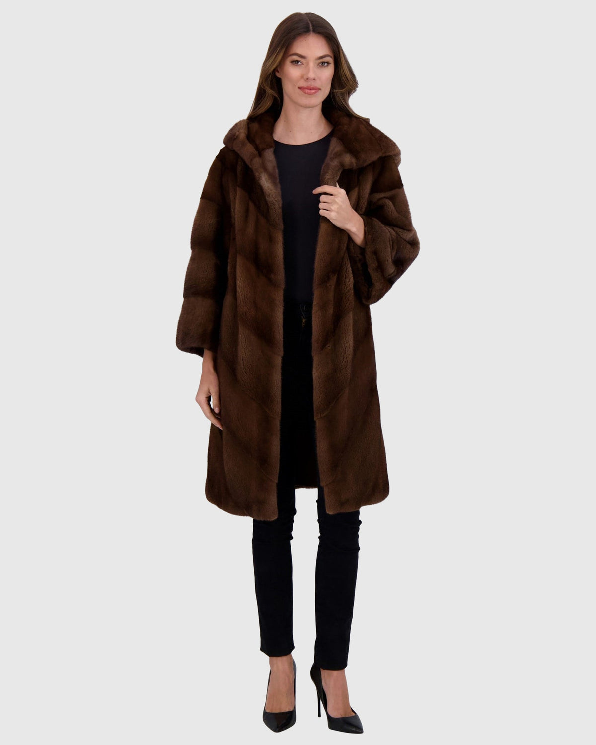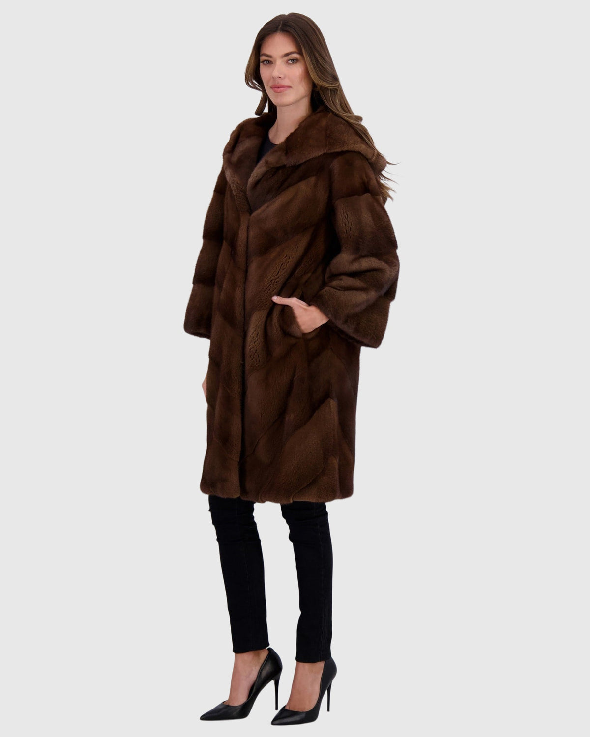 Mink Coat with Stand Up Collar Gorski First Copy - Scanbrown / XS