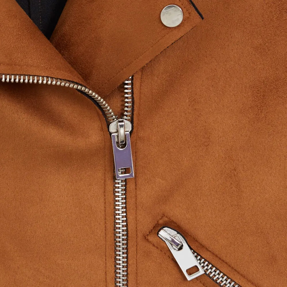Womens Brown Biker Suede Leather Jacket — a motorcycle jacket crafted for comfort, durability, and everyday style.